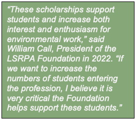 Awarded to undergraduate juniors, seniors or graduate students in an accredited science or engineering program, the scholarship encourages students to pursue careers in the environmental field and to provide students with opportunities to connect with LSRPA members to obtain internships and full-time jobs upon graduation.
