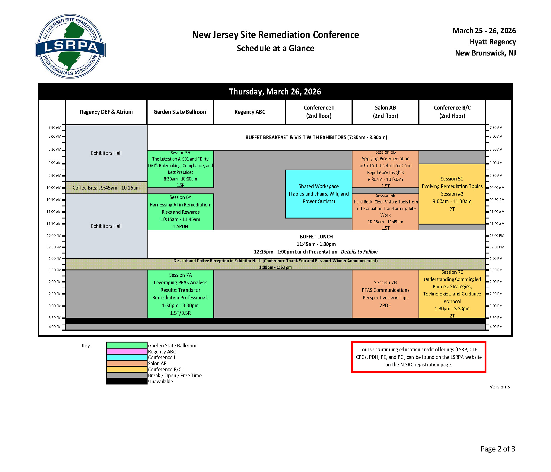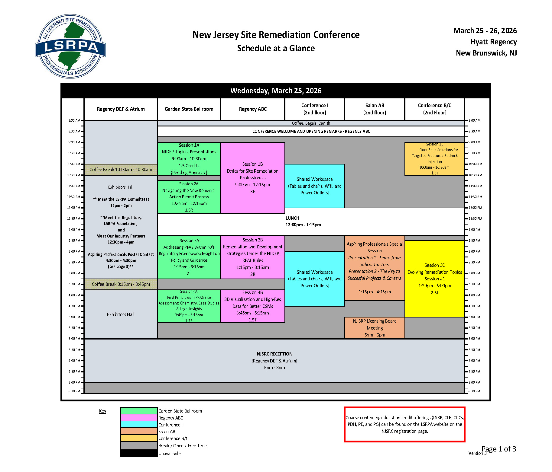 To assist with planning your course schedule, please refer to the following Schedule at a Glance. You can also download a copy here - https://www.lsrpa.org/docs/LSRPA-2026-NJSRC-SAAG-V3.pdf