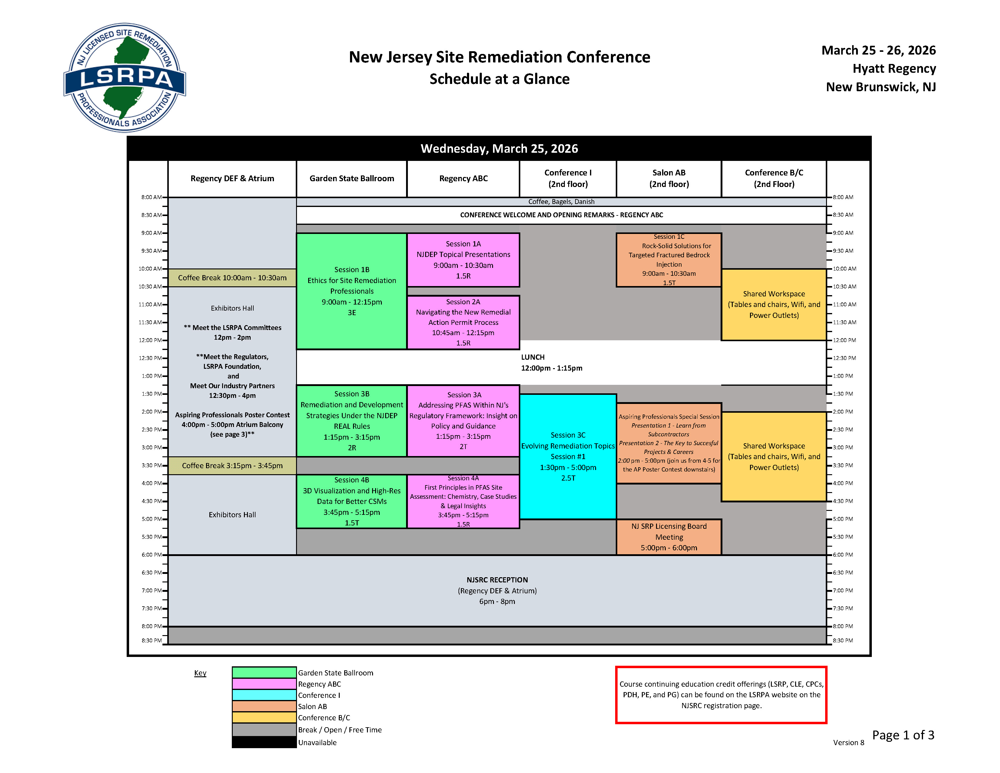 To assist with planning your course schedule, please refer to the following Schedule at a Glance. You can also download a copy here - https://www.lsrpa.org/docs/LSRPA-2026-NJSRC-SAAG-Version-8.pdf